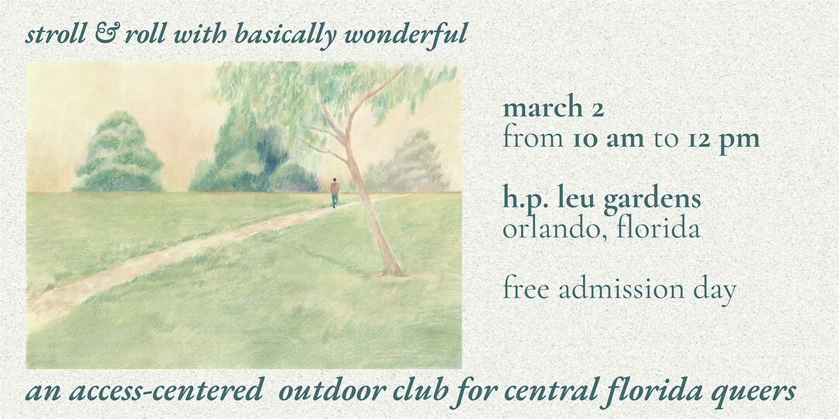 Stroll and roll with Basically Wonderful at H.P. Leu Gardens on Monday, March 2 from 10am to 12pm! Join us for a relaxing morning amongst nature and good company as we make our way down around the botanical garden together.
