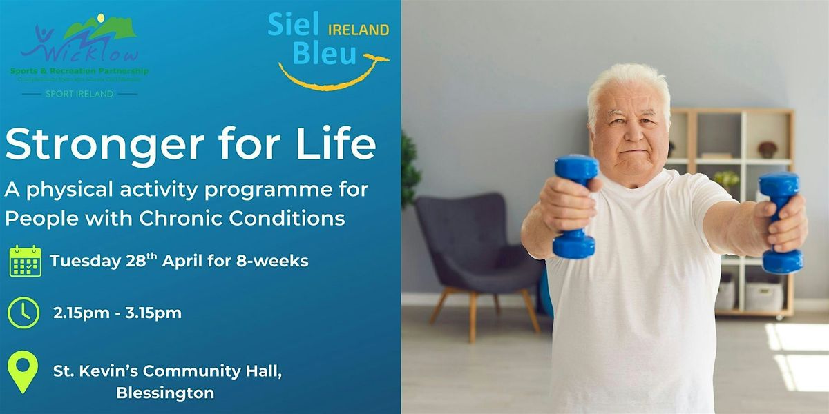 Stronger for Life is an 8-week physical activity programme aimed at people 50 years of age and over. The programme is designed to help people living with chronic health conditions become stronger, more active, and more confident in their daily lives.