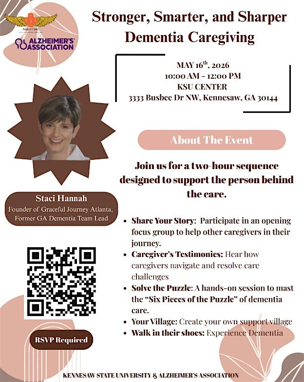 Caring for someone with dementia can be challenging, but you don’t have to do it alone. This engaging and insightful event, led by dementia care expert Staci Hannah (Founder of Graceful Journey Atlanta and former Georgia Dementia Team Lead), is designed to educate, connect, and uplift caregivers at all stages.