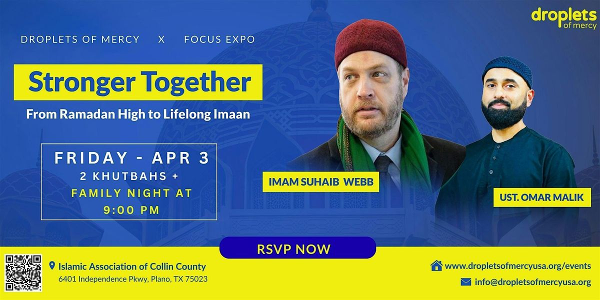 Join Droplets of Mercy and Focus Expo for a powerful day and evening focused on sustaining your imaan beyond Ramadan.