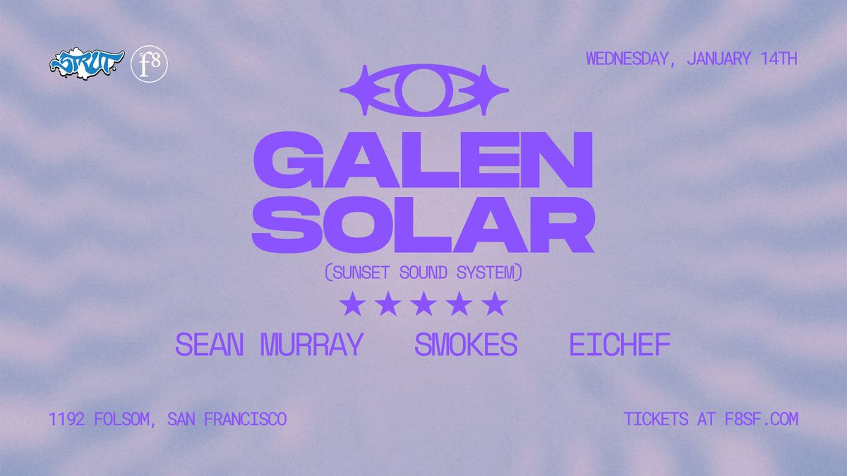 Wednesday night, January 14th Strut SF and F8 welcome local legends Galen and Solar to take over the decks! + Eichef, Sean Murray & Smokes