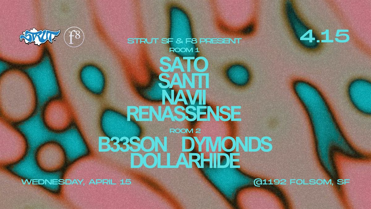 Wednesday night April 15th local stars Sato, Santi, Navii, and Renassense take the wheel at F8 for Strut SF!