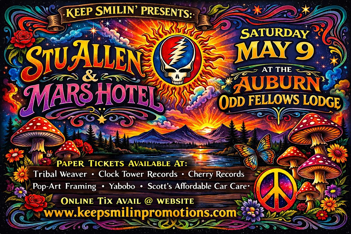GET READY TO CELEBRATE! This has become a true family reunion Those who have been understand, if you haven't you need to come & find out why Stu Allen & Mars Hotel Shows @ what some call the Foothill Fillmore, Auburn Avalon or the Cube (Like the Sphere w/ Corners) Are Not to Be missed