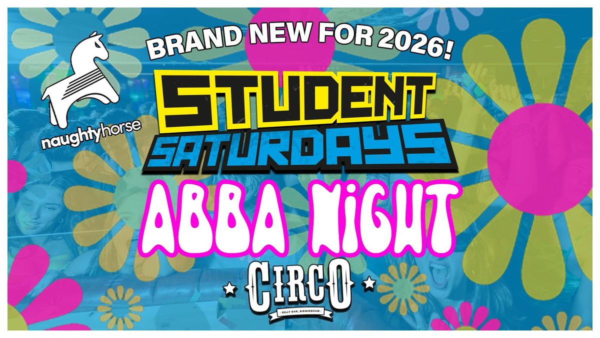The return of the LEGENDARY Naughty Horse ABBA night ... and this time we are bringing to Selly Oak in association with Student Saturdays at Circo!Not a fan of ABBA but know this ones going to be packed - dont worry, we play all music genres before and after the ABBA bangers - singalong, chart, throwbacks, house, bass, r n b and more!