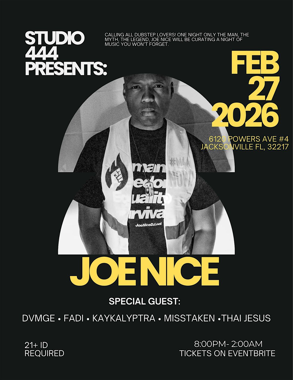 February 27th 2026 we have an immensely stacked line up you don’t wanna miss. It’s an honor to bring Joe to Duval county for an amazing night of music. If you love dubstep you know Joe is the reason we even have it here in America. Come find out the reason they put 555’s in the chat! You wouldn’t want to miss a legend put in absolute work on the decks would you?😈