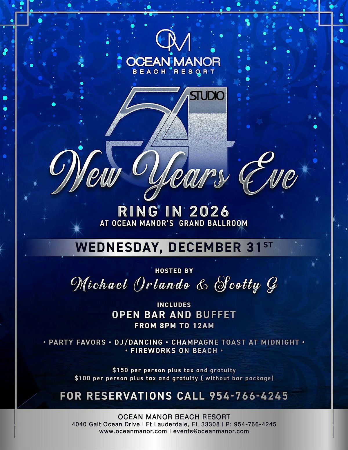 Join us at Ocean Manors Ball Room to celebrate the new year. $150 Includes Top Shelf Open Bar and Grand Buffet. General Admission $99.00