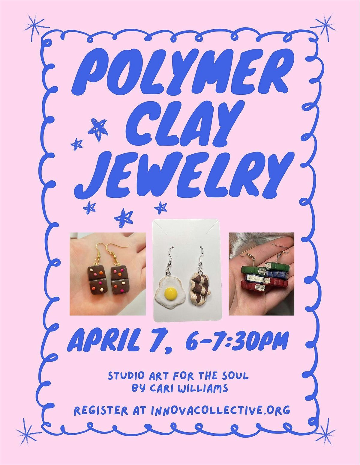 We'll be making polymer clay jewelry for April's class! A $7 supply fee will apply.
