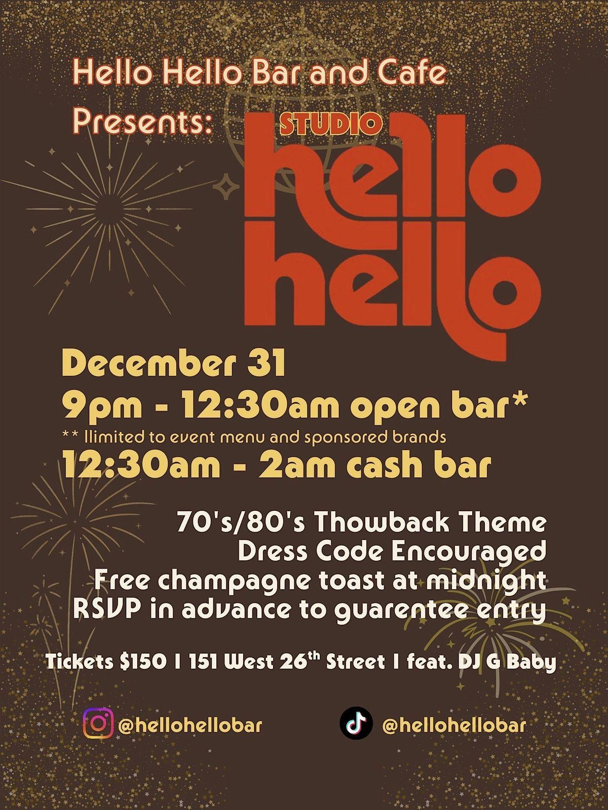 Hello Hello Bar and Cafe Presents: Studio Hello Hello (a New Year Eve Party)