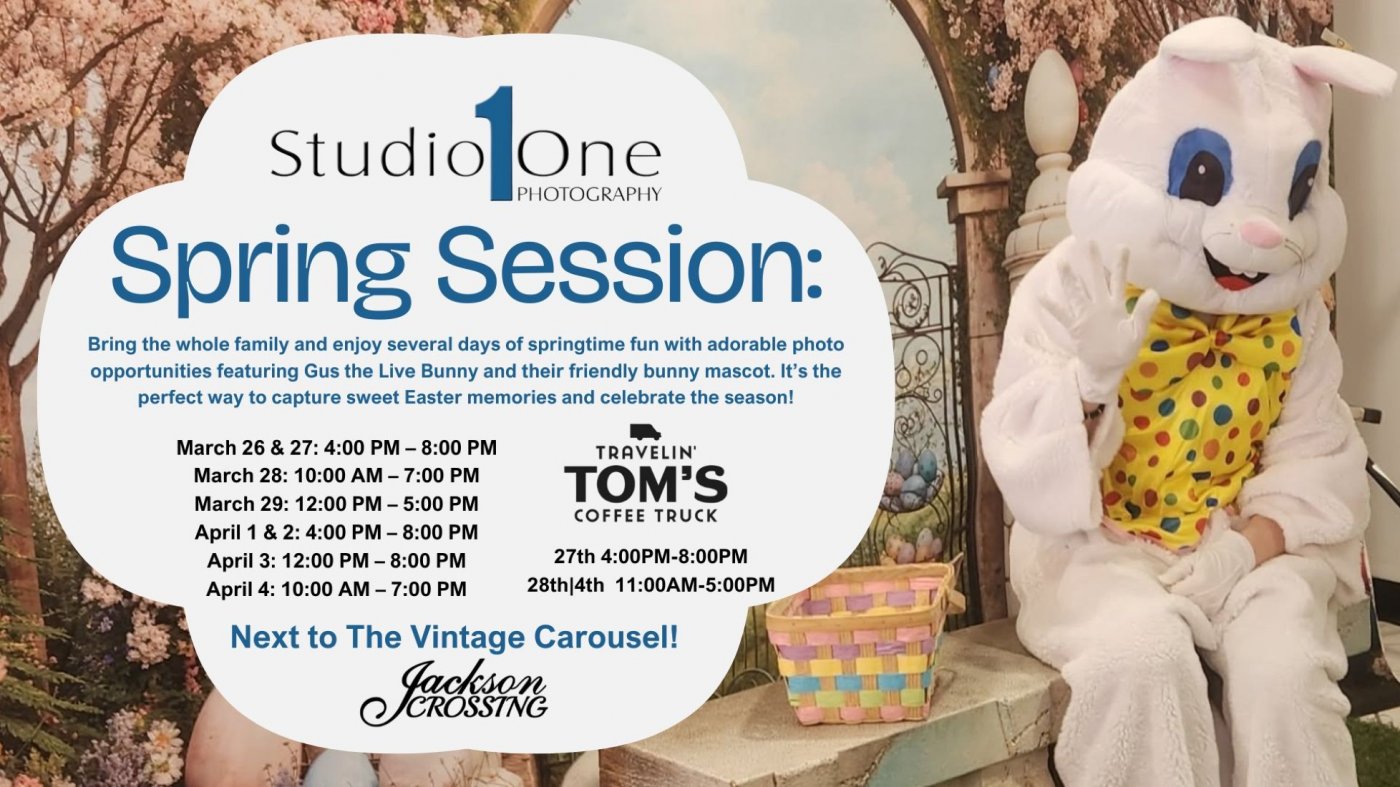 📸 Join us in March & April for Photos with Studio One Photography at the Jackson Crossing Mall! 🐰