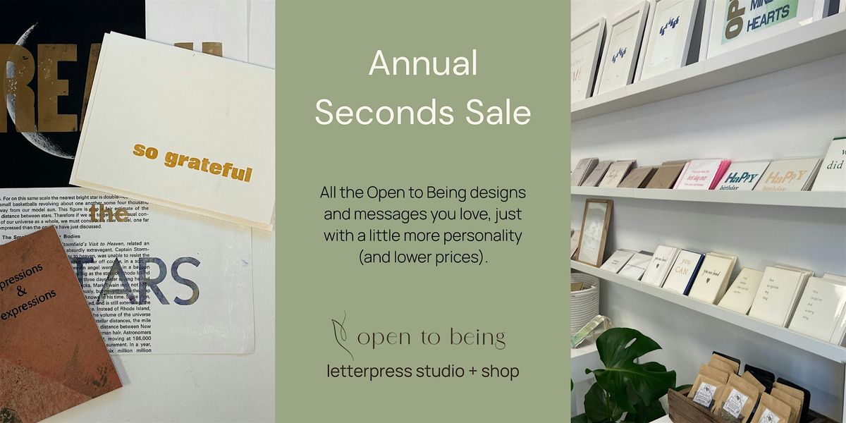 Join us at Open to Being for our first annual Studio Seconds Sale, a relaxed, open-studio afternoon centered on letterpress cards, prints, and the beauty of work made by hand. As we make space for new spring work, you’re invited to browse a special table of seconds—Open to Being greeting cards and art prints with minor imperfections, offered at reduced prices.