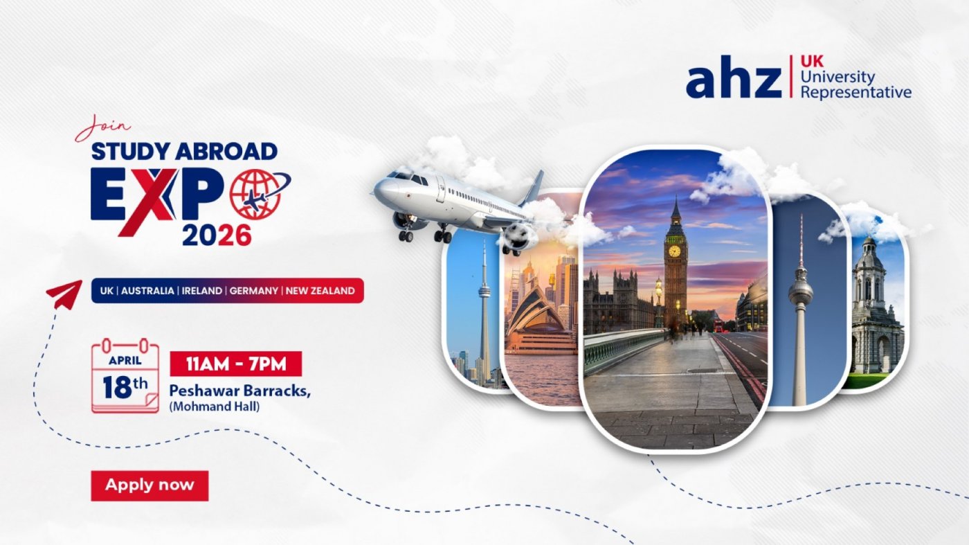 Are you planning to study in the UK, Germany, Ireland, New Zealand and Australia but unsure about the application process, scholarships, or visa requirements? This is your chance to get all your queries answered in one place! Join us at the AHZ Study Abroad Expo 2026, and take a step closer to securing your admission at a top university. Join us on 18th April (11AM – 7PM) at Peshawar Barracks, (Mohmand Hall) to bridge the gap between where you are and where you want to be.