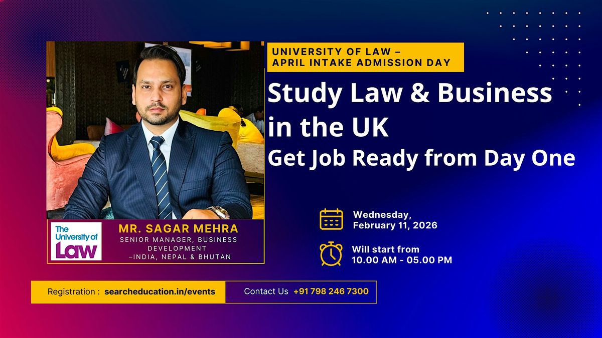 💡 This Admission Day is specially designed for students who wants to Study Law, MBA & Business programs & Career-focused UK education also wants apply to the University of Law (ULaw) for the April intake and want direct guidance, faster offers, and better chances of scholarships.