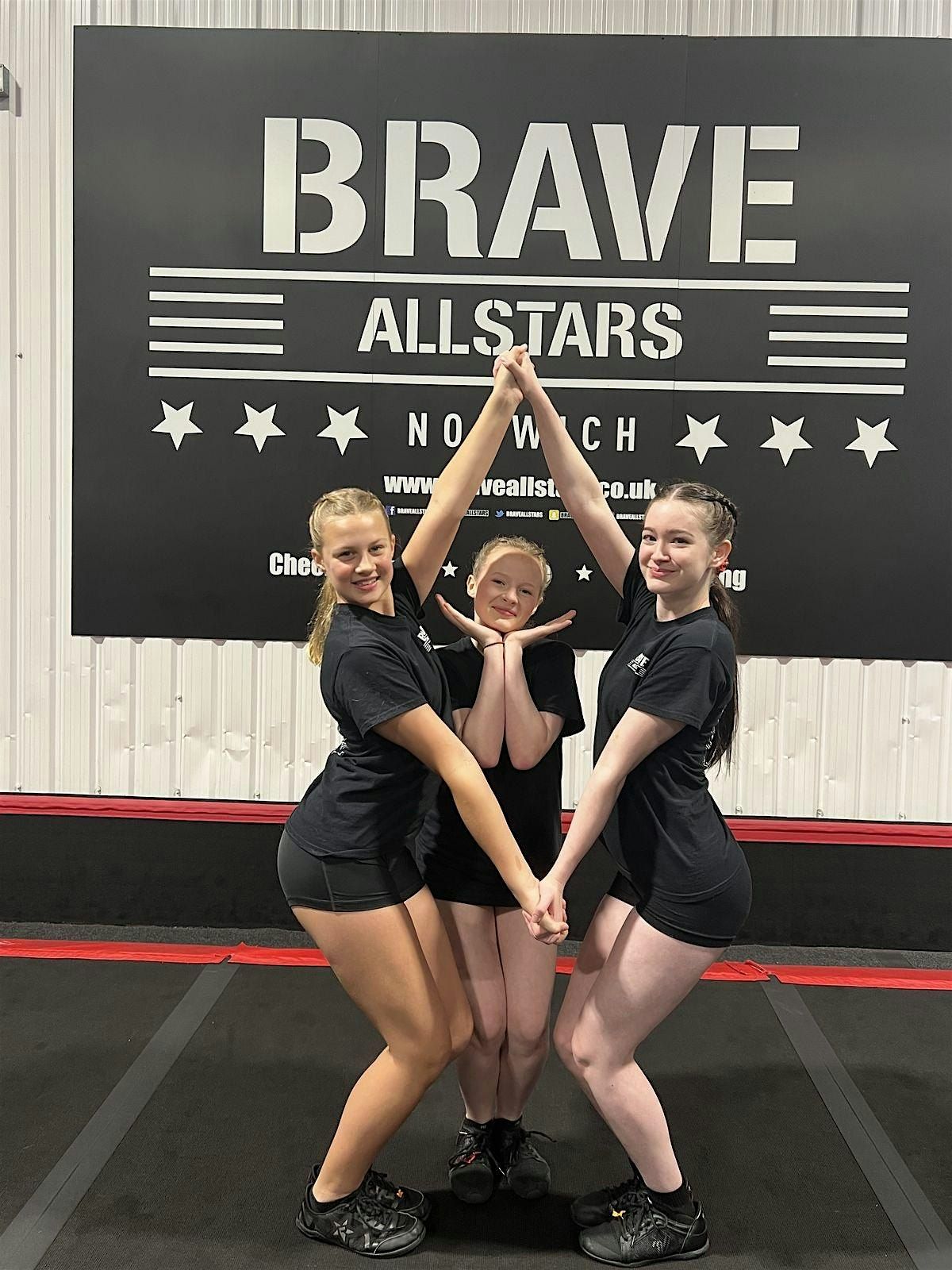 We ask that you bring water in a named bottle, all jewellery is removed or taped up, hair is out of the face in a style that will last the duration of the session, you wear comfortable, sporting clothes along with bare feet or cheer shoes. Brave apparel can be bought from our on site pro shop, but neither the apparel or cheer shoes are compulsory. Our 'Cheer Shoe Recommendation' document can be found on the homepage of our website. We recommend outdoor shoes that can be slipped on and off rather than lace up shoes to avoid congestion. Please note, apparel from other UK Cheerleading programmes is not permitted to be worn. Please be in Brave apparel or generic sports clothing.