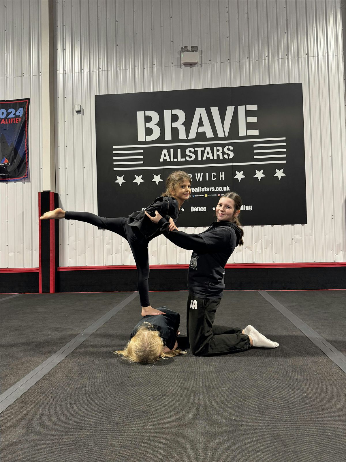We ask that you bring water in a named bottle, all jewellery is removed or taped up, hair is out of the face in a style that will last the duration of the session, you wear comfortable, sporting clothes along with bare feet or cheer shoes. Brave apparel can be bought from our on site pro shop, but neither the apparel or cheer shoes are compulsory. Our 'Cheer Shoe Recommendation' document can be found on the homepage of our website. We recommend outdoor shoes that can be slipped on and off rather than lace up shoes to avoid congestion. Please note, apparel from other UK Cheerleading programmes is not permitted to be worn. Please be in Brave apparel or generic sports clothing.