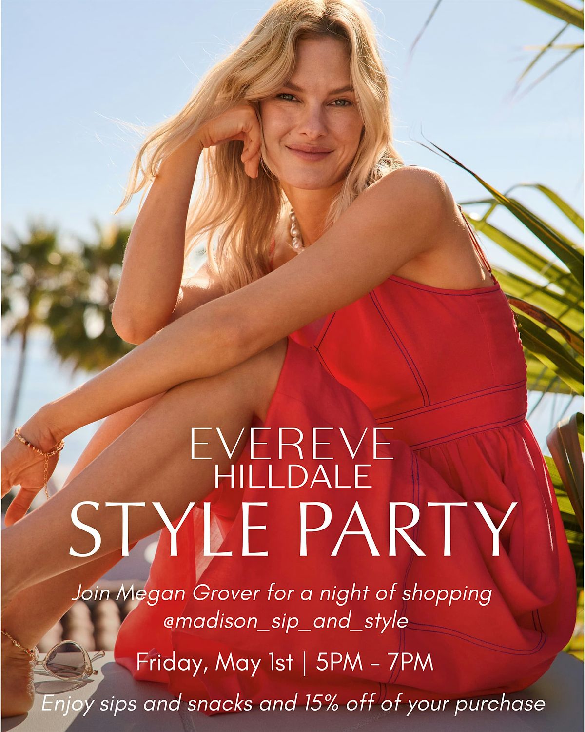 Enjoy an evening at Evereve that will include tasty charcuterie bites, bubbly, expert styling, and 15% off!!