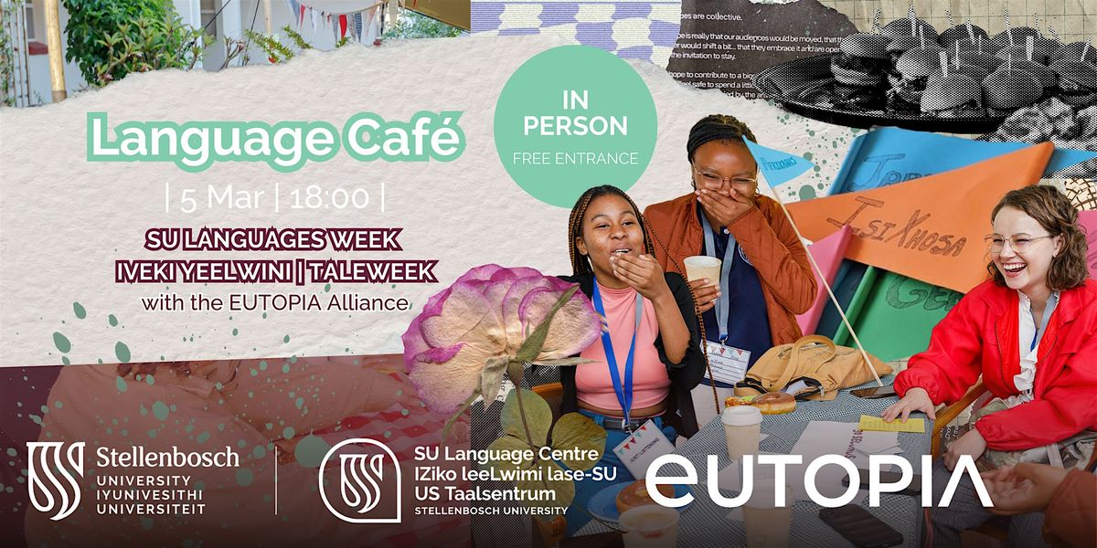 Language learners unite! You are invited to join an evening of games and connection to informally practise the language you are learning with other language learners and first-language speakers. The languages represented at the Language Café will include all those languages that are taught at Stellenbosch University, through degree programmes or partner institutions. Currently, this list includes English, isiXhosa, Afrikaans, German, French, Dutch, Mandarin Chinese and Japanese.