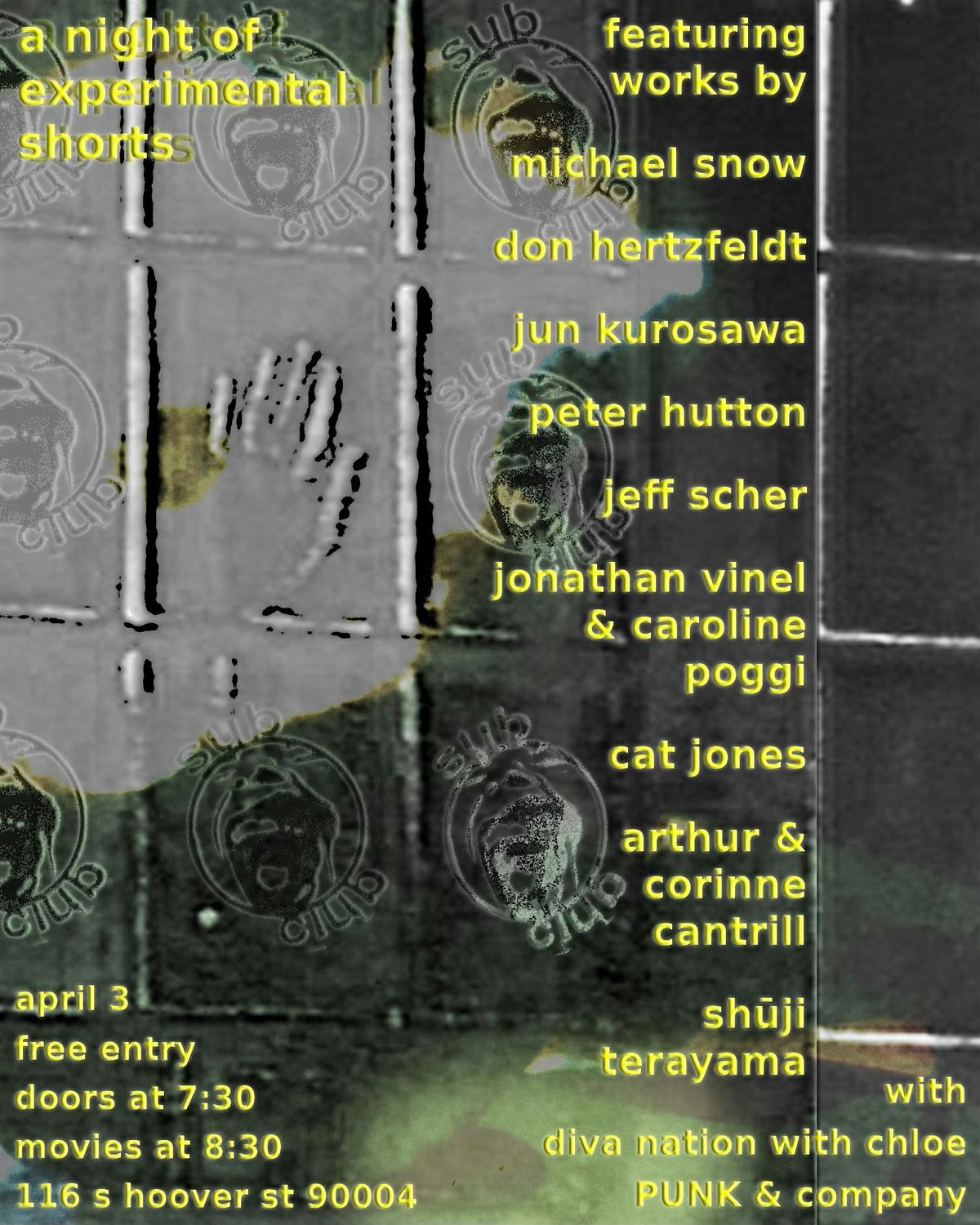 Join Subclub for another screening. This time around we present a night of experimental short films.