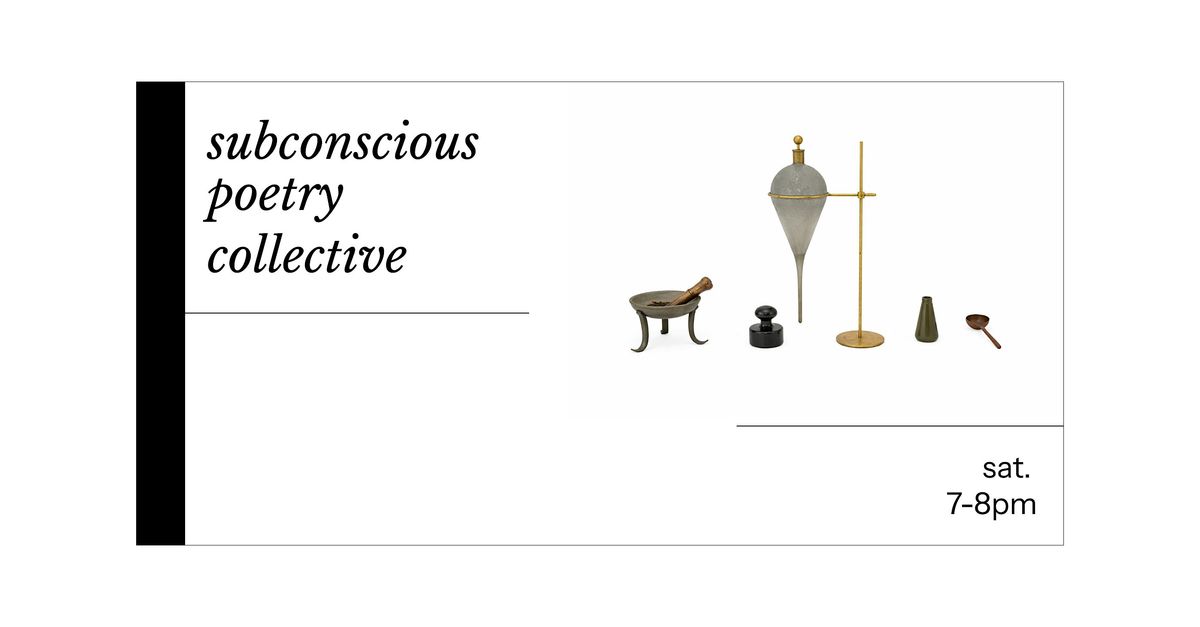 Join experimental writing group, the Subconscious Poetry Collective, for an evening of automatic writing, journaling and creative trance prompts — inspired by André Breton, Sigmund Freud, and the unconscious. No planning, no critique, and no rigorous editing... just spontaneous writing and the opportunity to grow your skill!