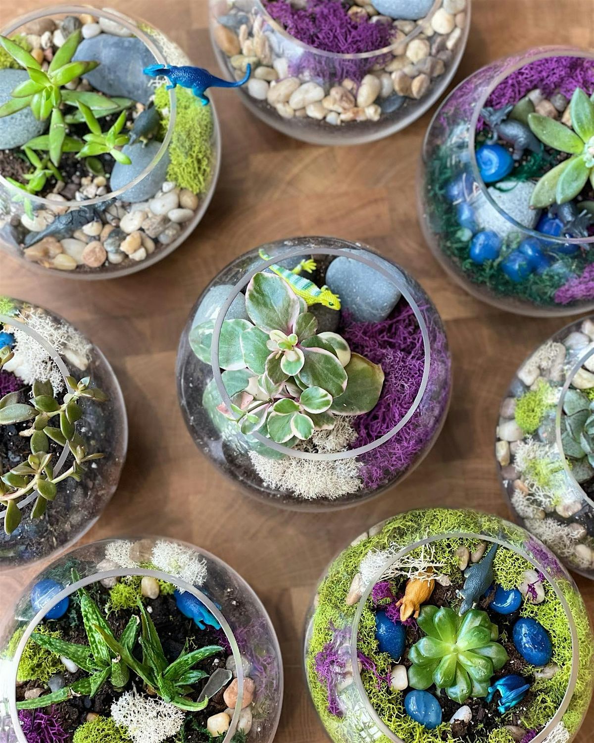 During this workshop, attendees will get their hands dirty putting together a beautiful succulent terrarium or wine bottle planter using a curated selection of high-quality materials, including moss, rocks, and live succulent plants.