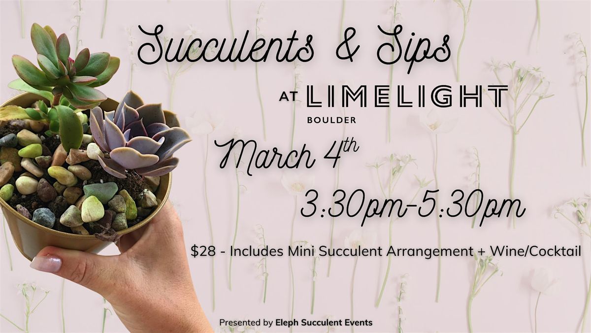 Kick off the spring season with a creative happy hour at the stunning Limelight Boulder. Join Eleph Succulent Events for a relaxed, mingling-style workshop where you can get your hands dirty and your spirits lifted!