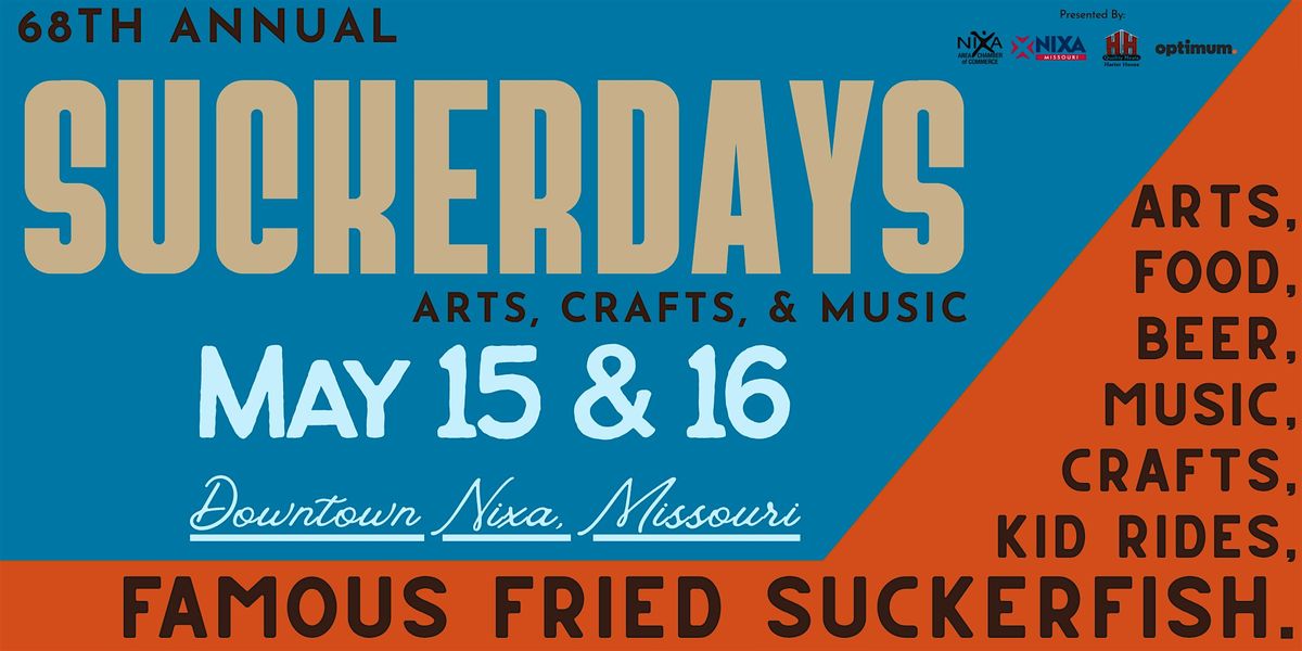 ☀️ Join us for the 68th annual Nixa SuckerDays: Arts, Crafts, and Music festival May 15th and 16th. This two day festival is packed full with over 100 arts and craft vendors, food trucks, live entertainment, kid rides and bounce houses, our famous Sucker Fish samples, and so much more. 🎣