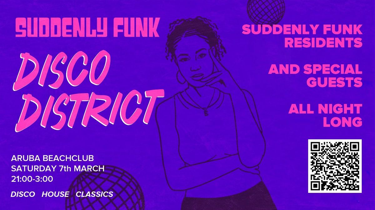 WHO'S READY FOR A BIG DISCO WITH BIG ENERGY? 🕺🪩 Disco District📍 Aruba Bournemouth🗓️ Saturday 7th MarchFor our first party of the spring season we're bringing back one of our favourite party concepts. On Saturday 7th March we want you all the join us under the disco ball on the @arubabournemouth dance floor in the disco district for a big disco with BIG energy 🪩♫ DISCO • HOUSE • FUNK & CLASSCIS ♫Expect a high energy party with all your favourite Suddenly Funk DJ's on rotation and special guests adding that extra delicious flare of Disco to an already incredible night of music. Get ready to get funk*d at Bournemouth’s best beach club 🔊What’s in store…🪩 Disco Anthems & Club Classics🎶 House & Funk Favourites🔥 Live Dancers / Performers🪩 Party All Night Under The Disco Ball🏖 Beachside Venue😎 Suddenly Funk DJs🎊 Suddenly Funk Decor💃 Funky Accessories & Giveaways🕺🏼 Funky Disco Attire EncouragedJoin us on Saturday 7th March for our first little disco of the spring season, expect our resident DJ’s mixing the best disco, house and club classics keeping you dancing all night 🎶Grab your group, put on your funkiest fits, and come get funk*d with us!