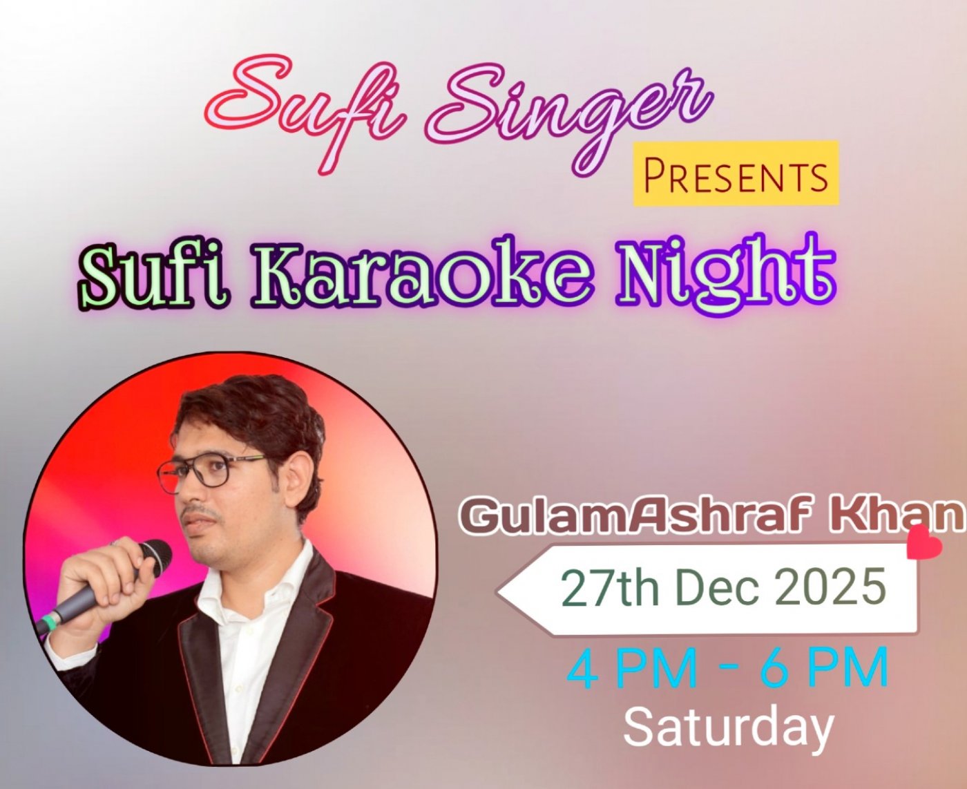 Experience an enchanting fusion of soulful Sufi music and the joy of karaoke at the mesmerizing "Sufi Karaoke Show" presented by GulamAshraf.