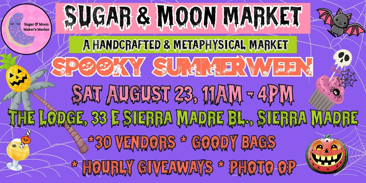 Come beat the heat with us at our “SPOOKY SUMMERWEEN” INDOOR MARKET, featuring 30 HANDCRAFTED MAKERS and METAPHYSICAL SERVICES with a wide variety of goods and services to choose from! Our market is located at The Lodge at 33 E. Sierra Madre Bl., Sierra Madre, CA.