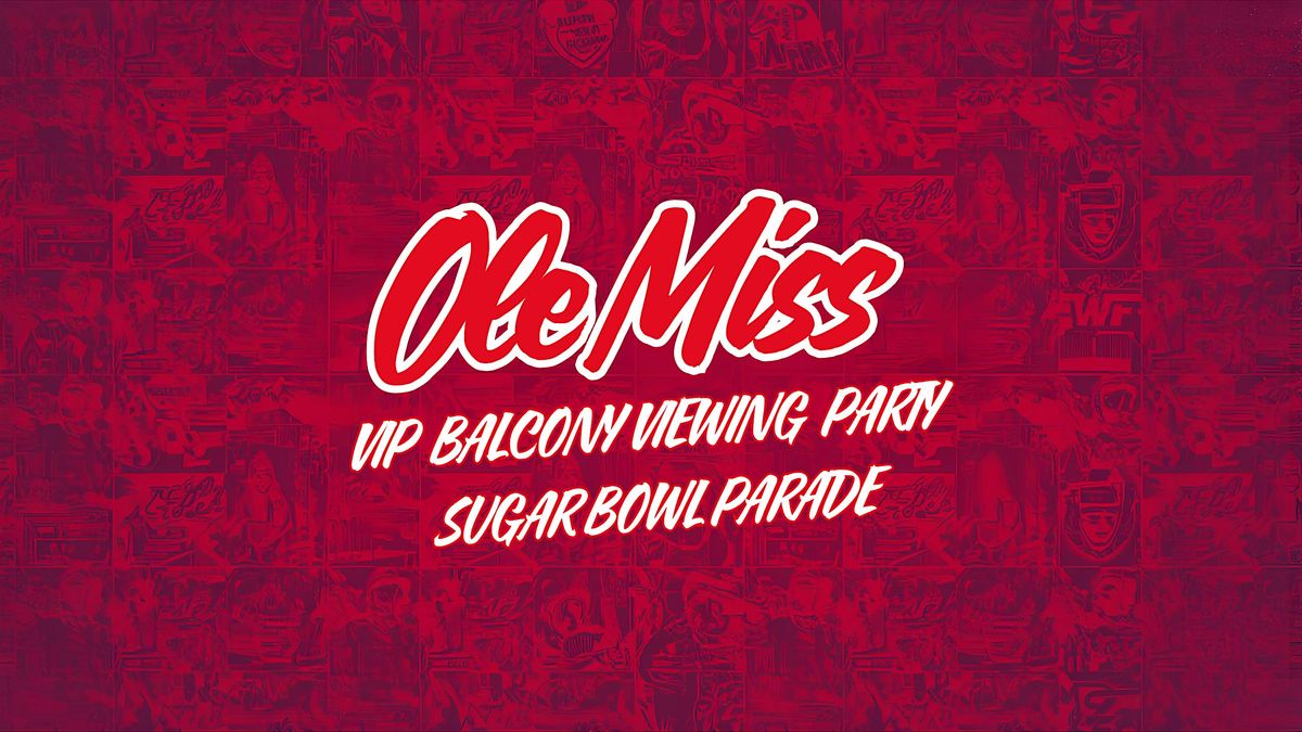 Welcome to the Ole Miss VIP Balcony viewing party for the Sugar Bowl parade! 🎉 Join us at the Toulouse Terrace located at 541 Decatur St on January 1, 2026 at 1:00 PM for an unforgettable experience. Get ready to enjoy the parade from a prime location with exclusive access to the balcony. Don't miss out on this opportunity to celebrate with fellow fans and cheer on your team in style. See you there!