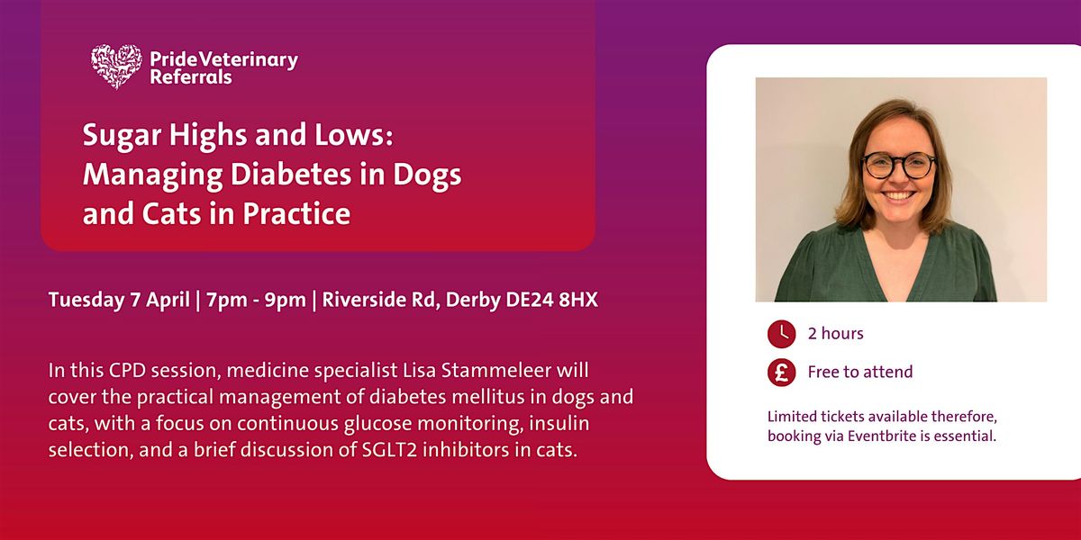 Practical management of diabetes in dogs and cats, covering CGM, insulin choices, and a brief look at SGLT2 inhibitors in cats.About this Event
