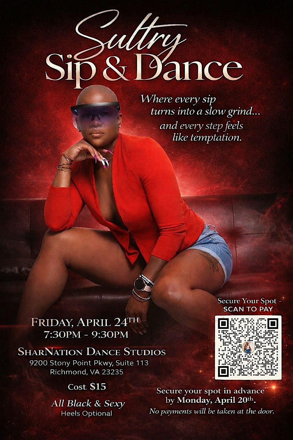 Grab your sexy black attire (heels optional), sip on some amazing cocktails, and learn a sexy dance. This night is going to be filled with fun, laughter, sexiness, music, drinks, and more. You don't have to be a dancer to enjoy this night. Allow the music to move you! It's all about your sexy! Now don't wait, grab your tickets now.