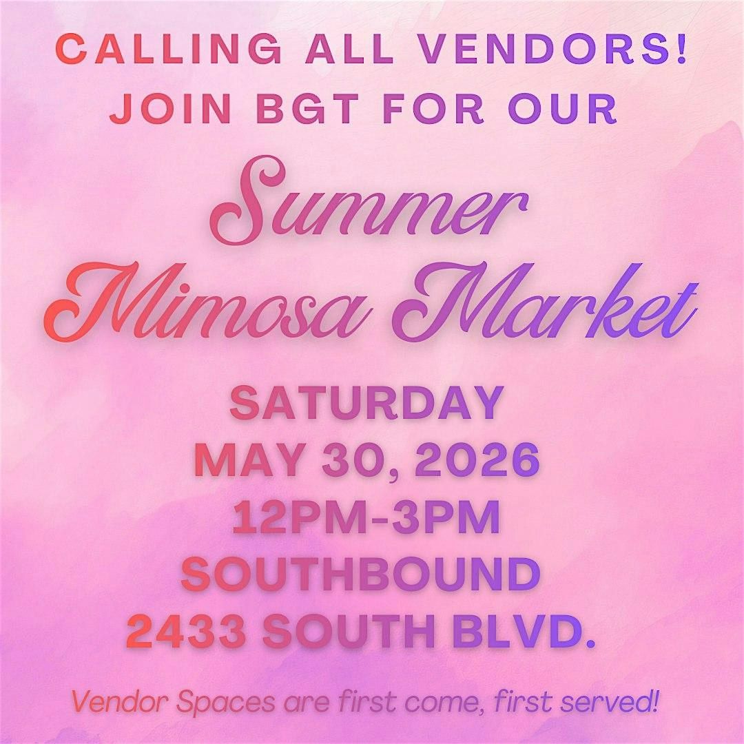 BGT is hosting another amazing Mimosa Market at one of our favorite venues - Southbound! This event is FREE to attend as always! RSVPs are appreciated but not required. BGT events are ALWAYS vibeeeee - you don't want to miss out!