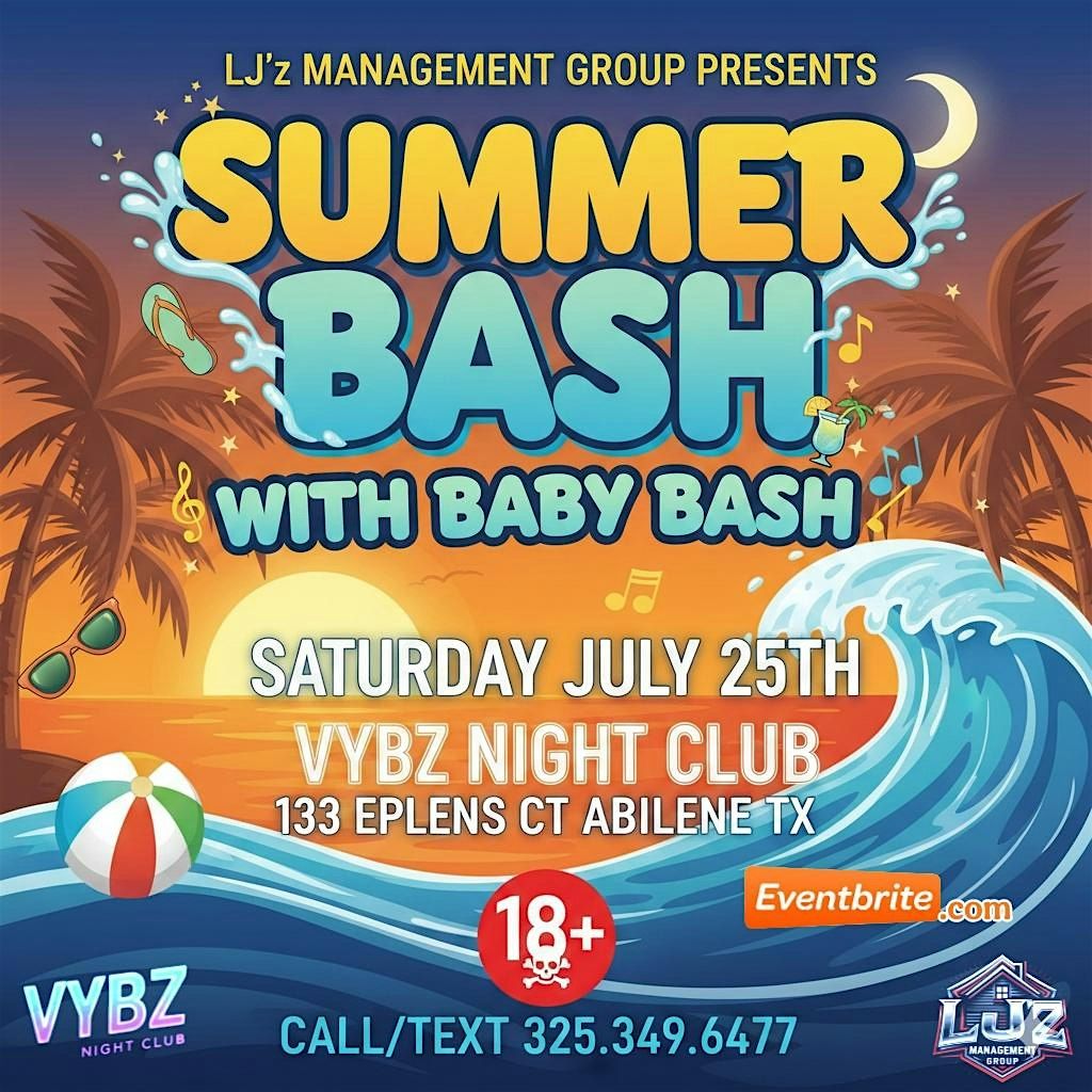 JULY 25th BABY BASH LIVE AT VYBZ NIGHT CLUB ABILENE TX. Have some closer for your "Middle School Heart". Doors Open @9pm. No Refunds 18+