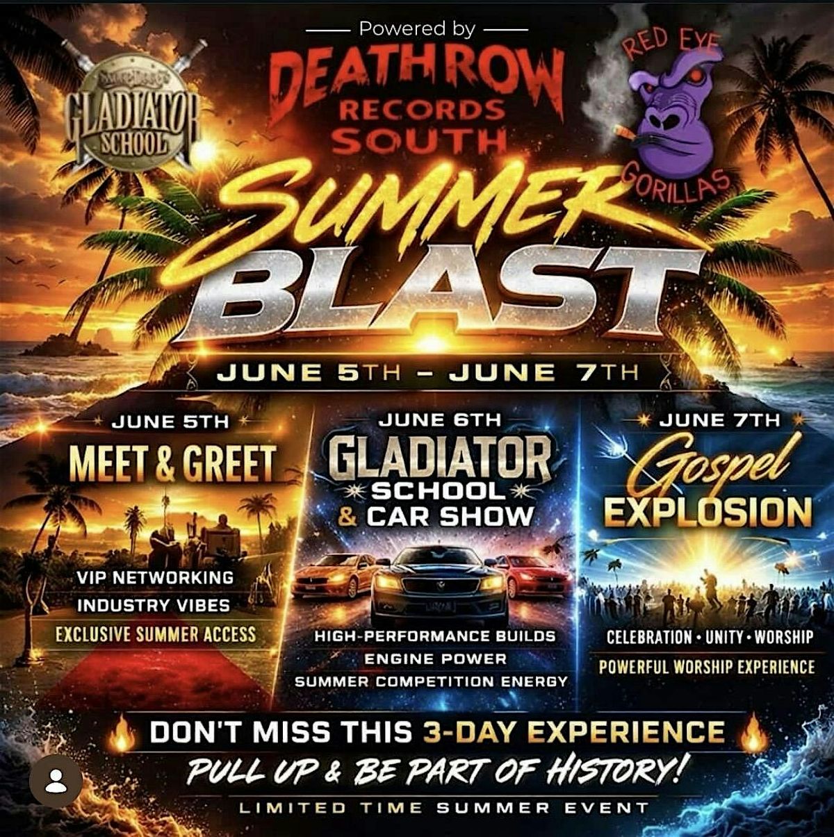 Get ready for an unforgettable in-person experience! Join us at Summer Blast where Deathrow Records Juice The Producer, Emak & Red Eye Garillas Bring you an Epic weekend. Don't miss out on the vibes, beats, and good times this summer! It's all happening liveācome through and feel the energy!