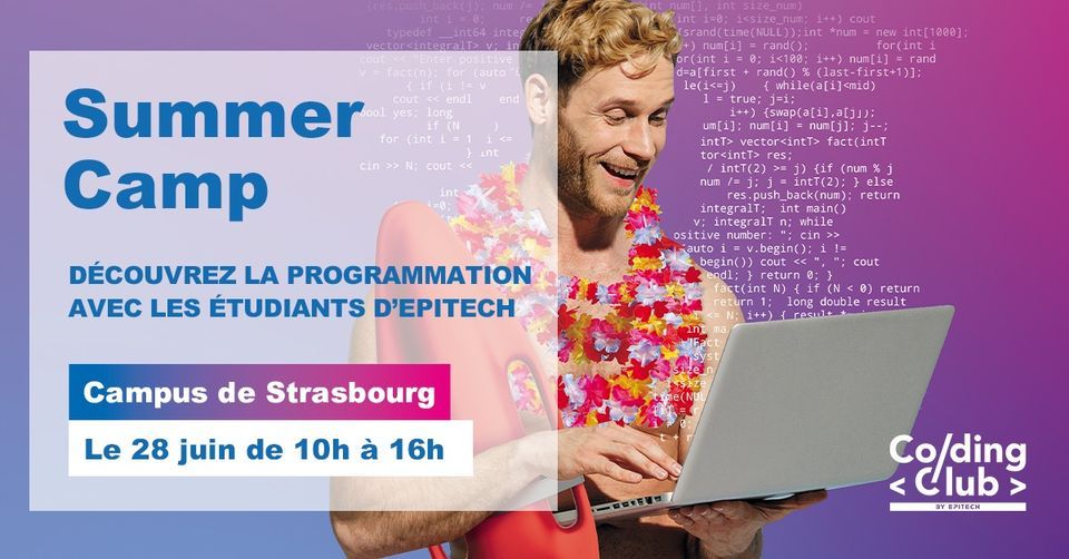 Inscription obligatoire ici : https://www.eventbrite.fr/e/billets-summer-coding-camp-mercredi-28-juin-2023-640413151977