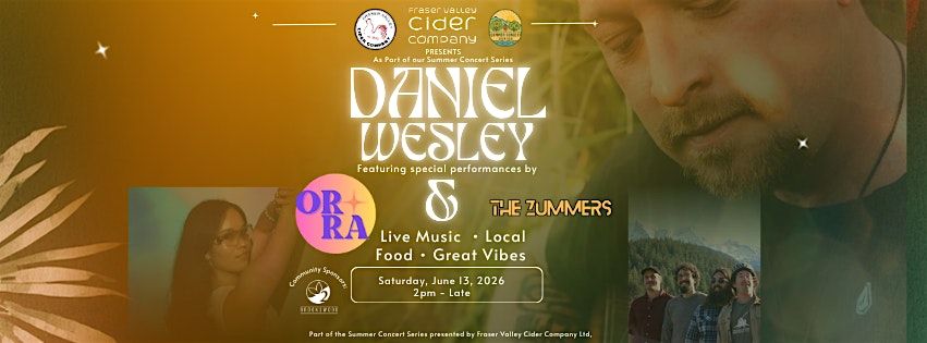 We’re excited to welcome Daniel Wesley back to Fraser Valley Cider Co., and to introduce Orra Music and The Zummers as this year’s opening acts. These folks are bringing even more energy to the stage!