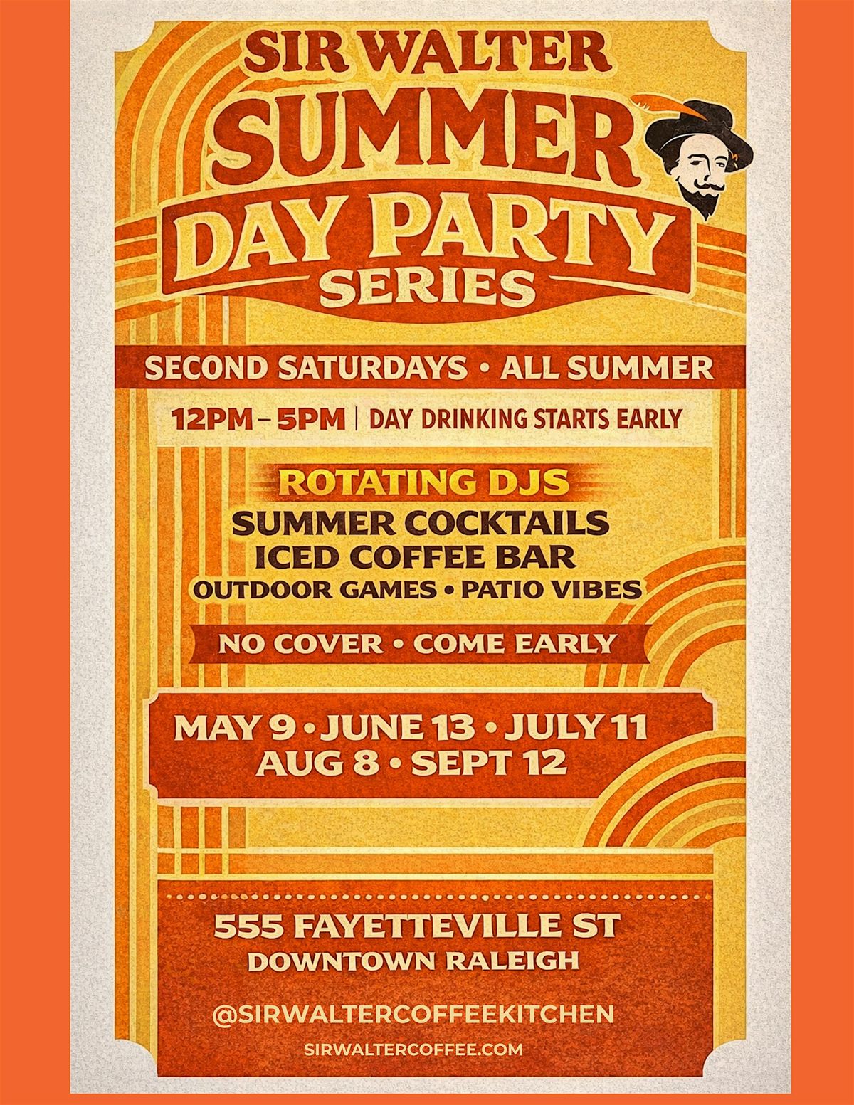 Sir Walter Summer Day Party Series - Second Saturdays 12–5. May - Sept - DJs, Outdoor Games - Summer Cocktails - Summer Coffee Menu