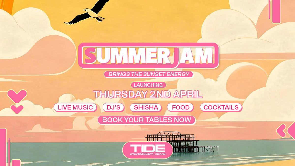 SUMMER JAM - Every Friday & Saturday at TideSummer Jam brings the ultimate sunset terrace energy to Tide Beach Club every Friday and Saturday. Expect live music, DJ sets, cocktails, food and shisha, all set against Brighton’s iconic seafront.
