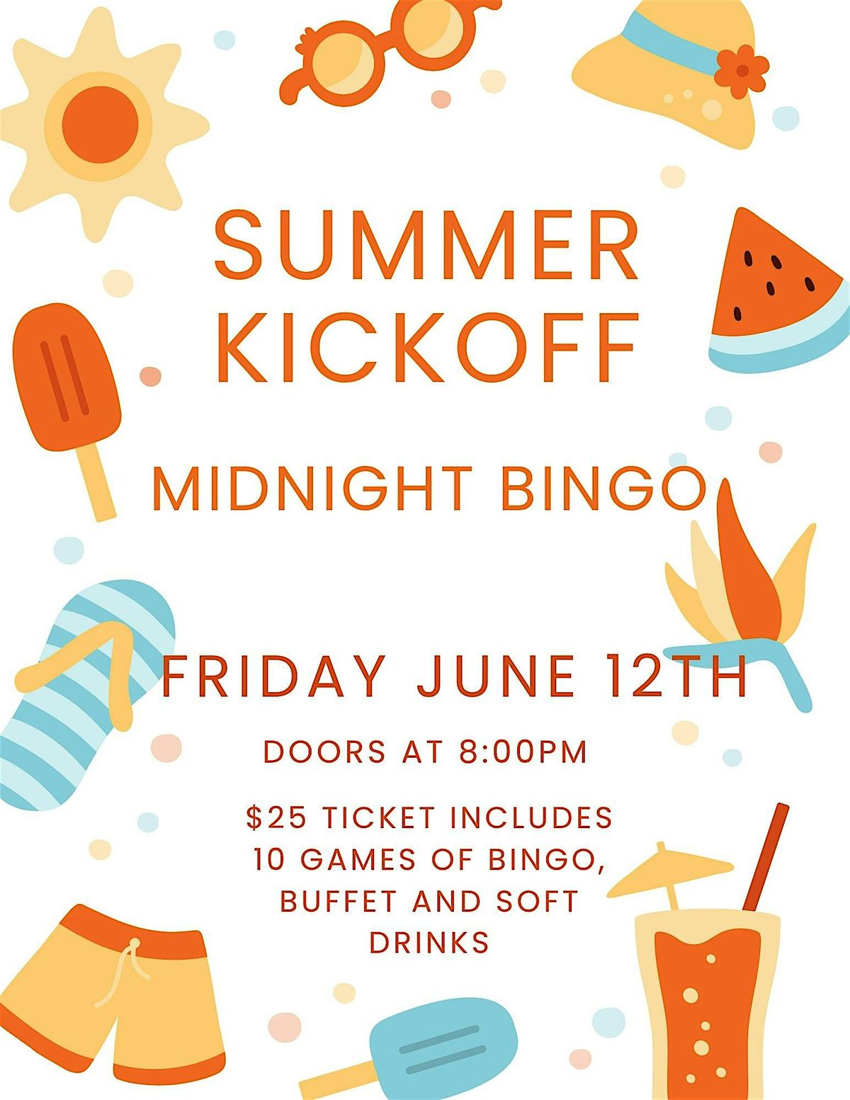 Join us in person for an exciting night of bingo fun as we kick off the summer season! Whether you're a bingo pro or just in it for laughs, this event is all about good vibes and great company. Bring your friends, snag some snacks, and let’s make some memories under the stars. Don't miss out on the midnight bingo craze that everyone’s talking about!