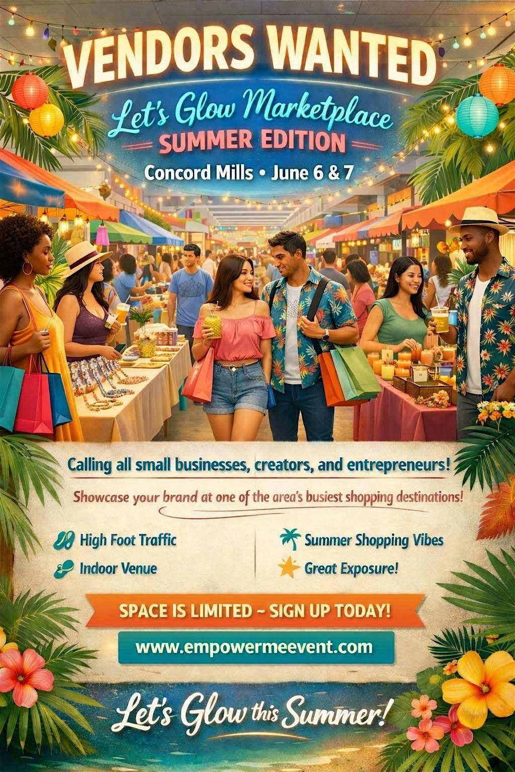 Join us for a fun day at the Summer Market Place! Discover cool local vendors, tasty treats, and great vibes. It's happening on June 6 &7 th , 2026 at during the mall hours (Eastern Time). Bring your friends and enjoy an awesome in-person experience. Can't wait to see you there!