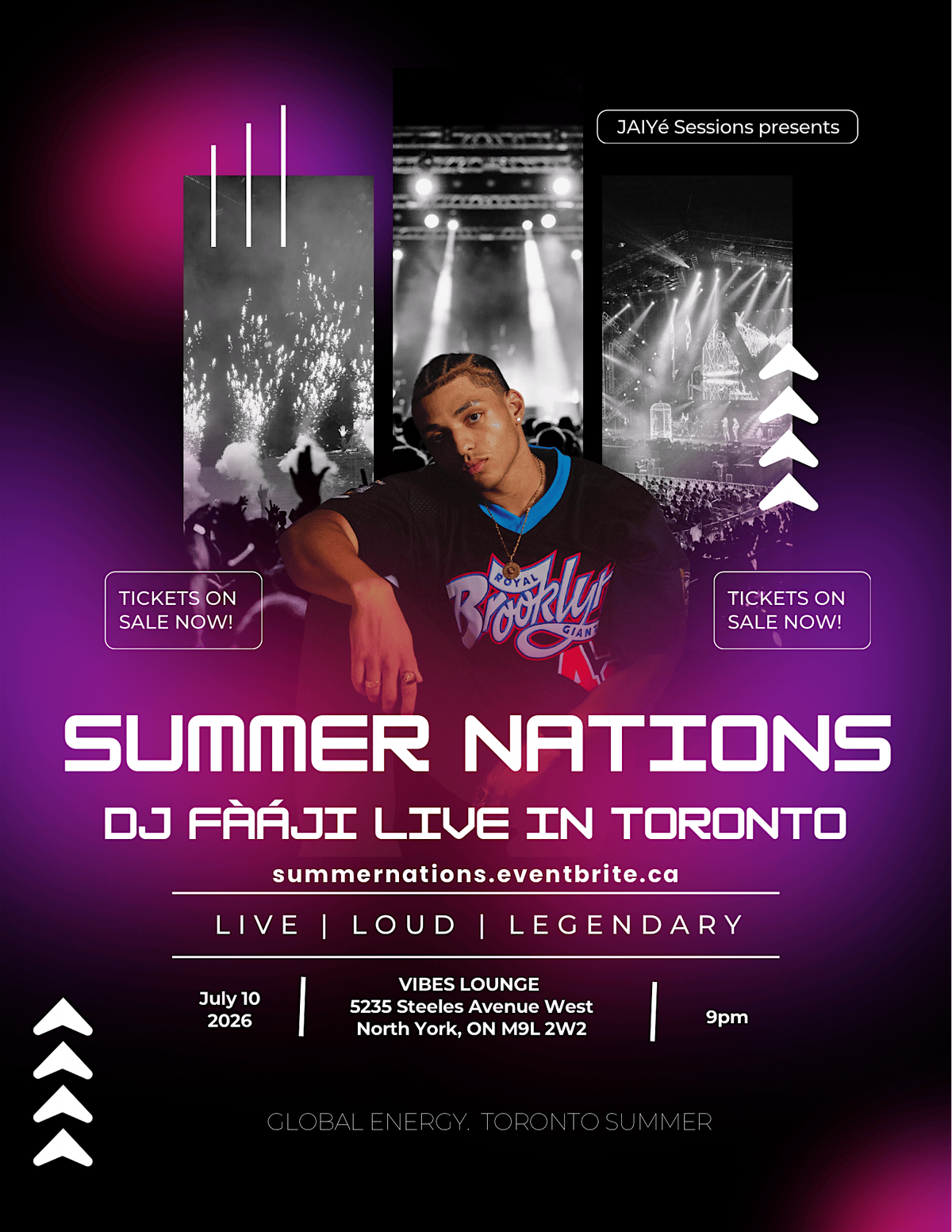One dancefloor. Many cultures. JAIYÉ Sessions: Summer Nations brings global rhythms, summer vibes & unforgettable energy to Toronto.