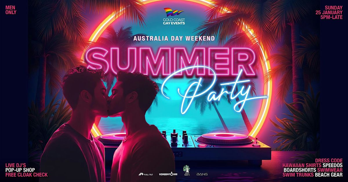 Dress for a hot night at the beach in your hottest and sexiest speedos or your favourite swim shorts at this men-only SUMMER PARTY extravaganza.
