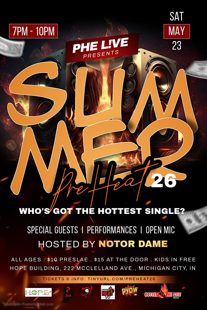 Get ready to turn up the heat! The Summer Preheat Series is THE open mic showcase you don't want to miss. This high-energy night will be packed with live performances, special guest appearances, nonstop music, and power networking opportunities โ all set to the electrifying vibe of summer in full swing.