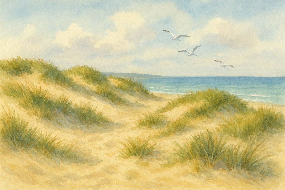 Summer Sand Dunes: Learn to paint soft washes and textures to capture sunlit dunes and beach grasses.