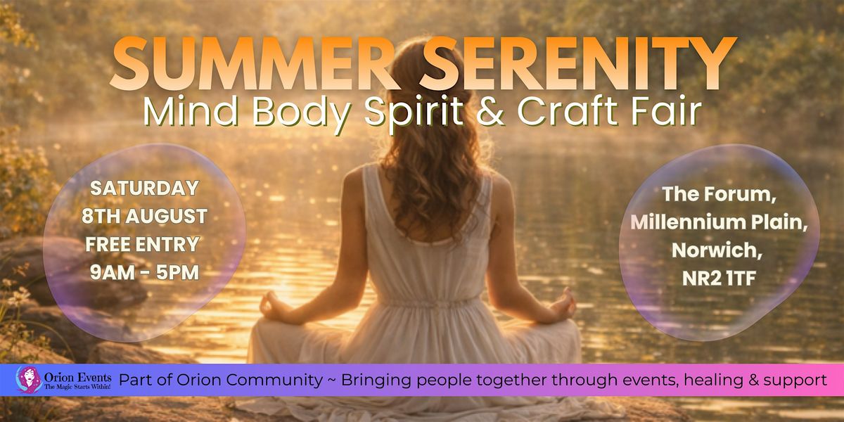 Join us on Friday 8th August at The Forum, Norwich, for a gentle, restorative day filled with peaceful energy, creativity, and connection. Summer Serenity offers a welcome pause from busy routines, inviting you to enjoy a calmer pace and nourishing experiences.