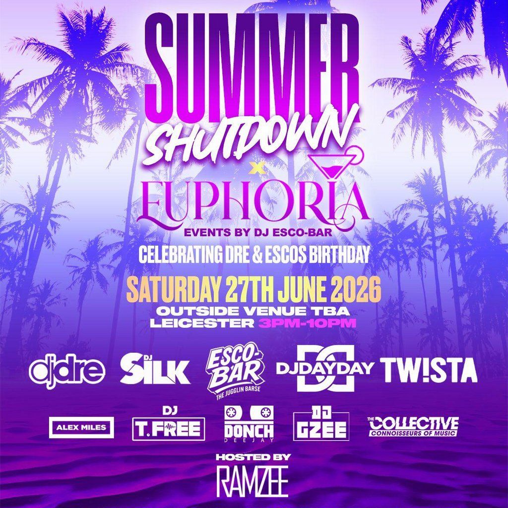 Summer Shutdown have linked up with Euphoria events by Dj Esco-Bar to give you the summer day party of the year in East Midlands not to be missedArtists