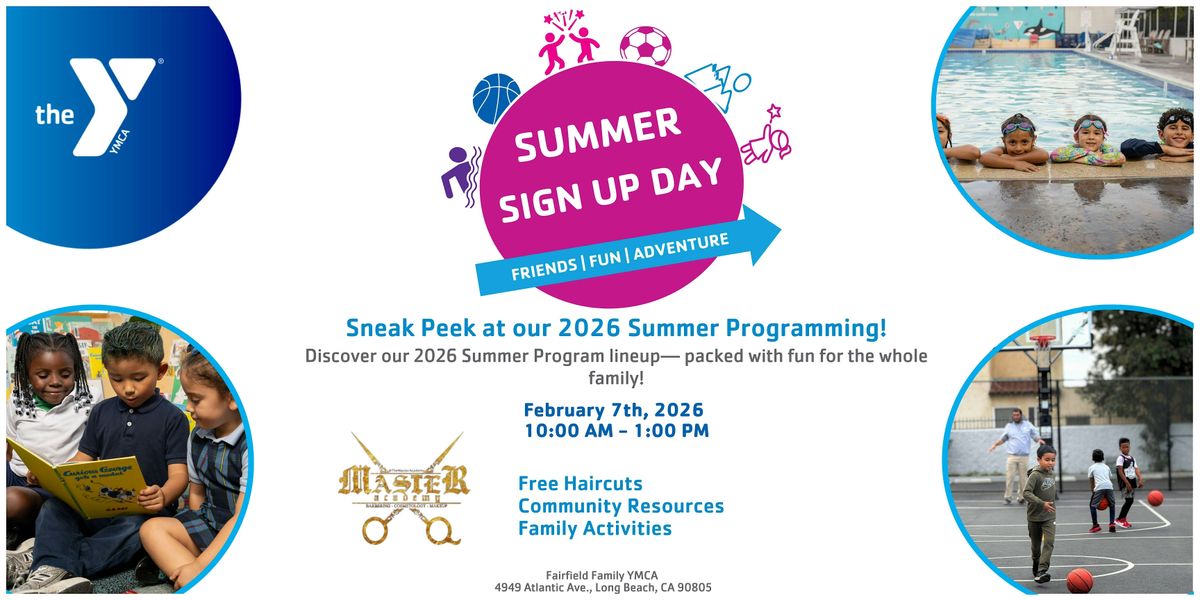 Join us for Summer Sign Up Day on Saturday, February 7, 2026, from 10:00 a.m. to 1:00 p.m. and get a head start on an unforgettable summer at the Y. This family-friendly event is your one-stop shop to explore our summer programs, meet our staff, ask questions, and secure your spot in camps, sports, swim, and more. From fun and friendship to growth and confidence, summer at the Y is all about helping kids and families thrive. Don’t miss the excitement—find your fun, find your community, and find your Y.