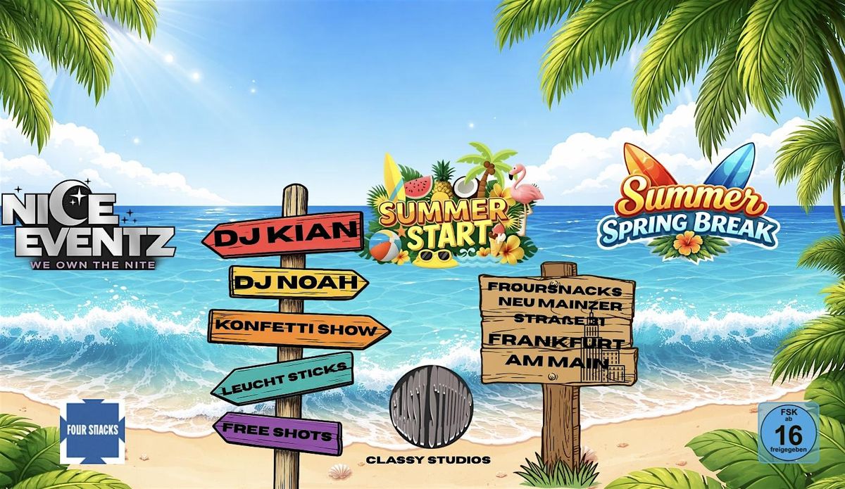 Am 10. April feiern wir die Spring Break Summer Party im Foursnacks Club Frankfurt (Neu Mainzer Straße 24). Ab 21:30 Uhr öffnen sich die Türen für eine Nacht voller Summer-Vibes, Konfetti & Eskalation! 🔥