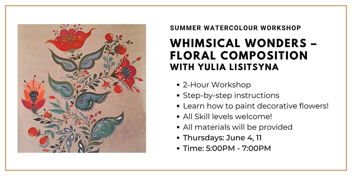 Students will experiment with Ecoline pre-diluted watercolour, along with traditional watercolour and soft-body acrylic paints to create layered, vibrant floral designs. Through guided instruction, you will explore texture, colour harmony, and intuitive composition while developing a whimsical and personal approach to painting.