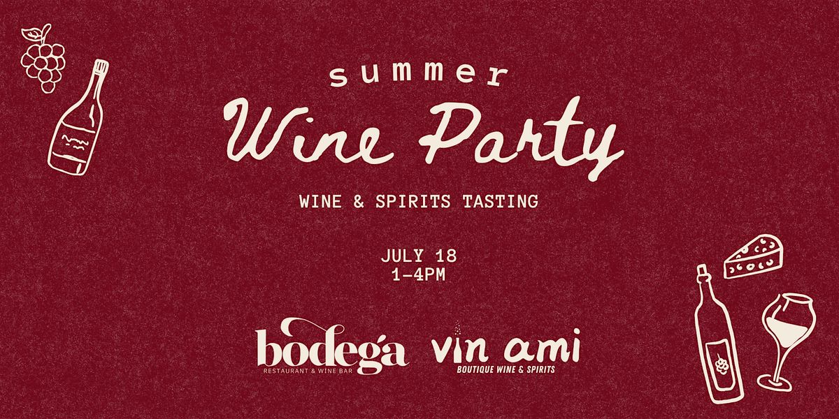 Welcome to the first Summer Wine Party at Bodega & Vin Ami! This event will include plenty of wine and spirits from across the globe as well as live entertainment by Hailey & Brett Cooley and small bites provided by Bodega. If you joined us for Vino Vixen in 2025, you'll be familar with the set up!